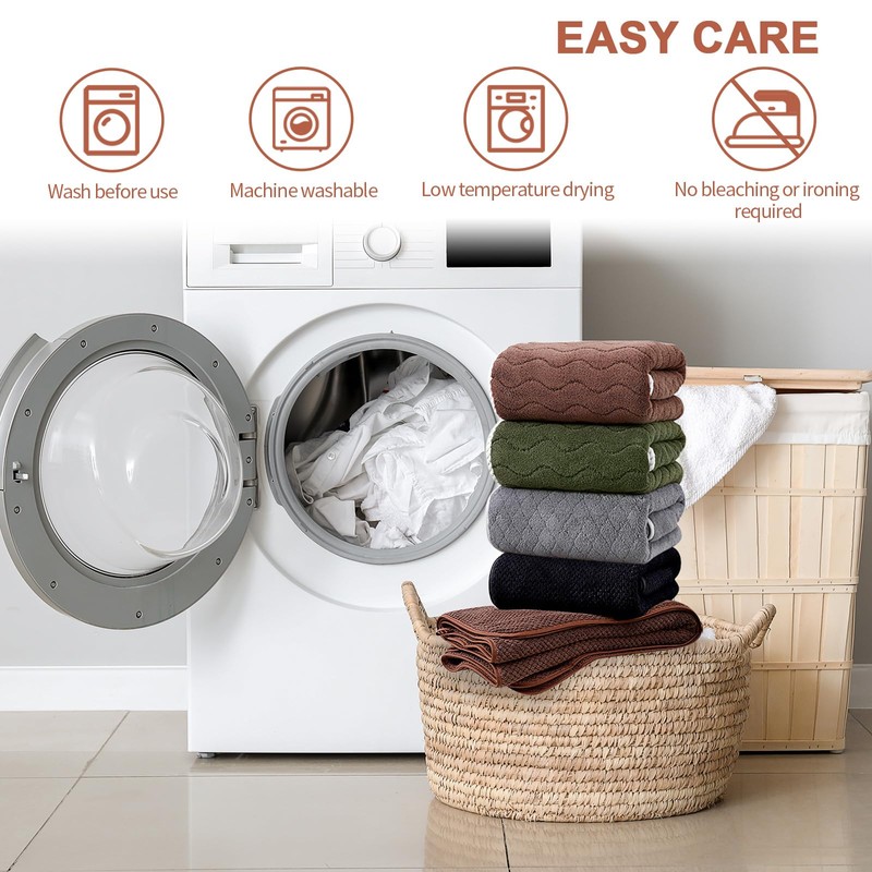 - 🌷FÁCIL DE CUIDAR: Las toallas para baño se pueden lavar a máquina. Las toallas de color oscuro tienen un ligero color flotante en el primer uso, se recomienda lavar las toallas individualmente en agua fría sin lejía ni suavizante. Para evitar la decoloración imprevista de los colores, se recomienda no frotar ningún tipo de maquillaje, crema o exfoliante directamente sobre la toalla de baño.