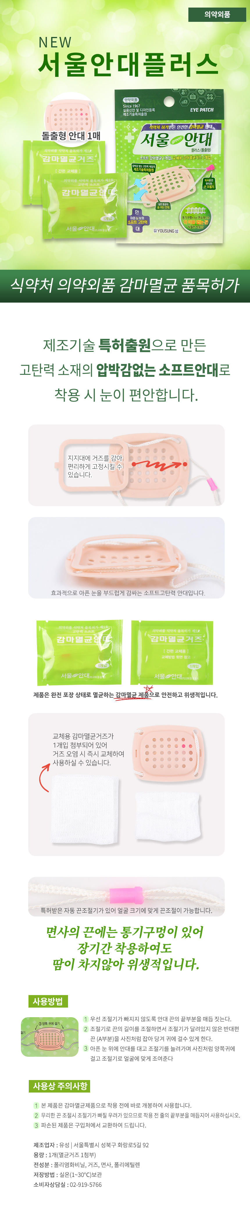 Yuseongsanup New 서울안대플러스 돌출형 x5개 (멸균거즈 첨부) New Seoul Eye Patch Plus Protruding Type x5 (Includes Sterile Gauze)