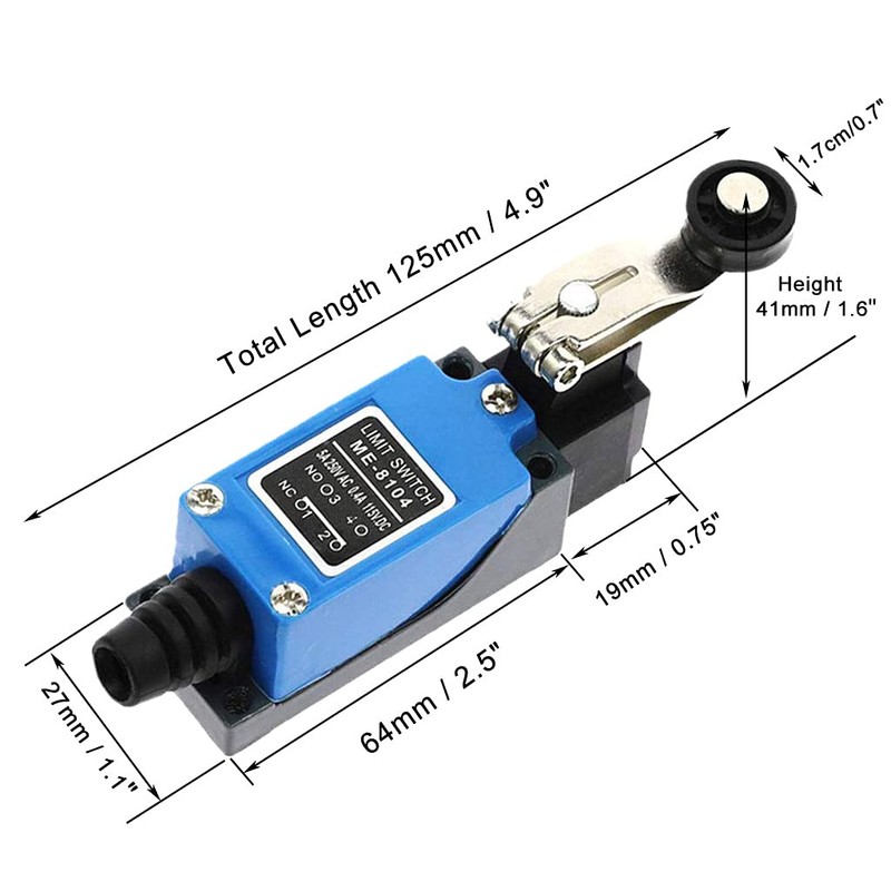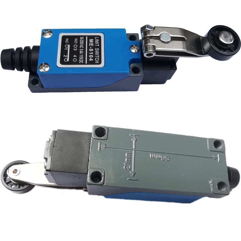 - Modelo: ME-8104; interruptor de límite de circuito doble, brazo de palanca ajustable giratorio con rodillo.