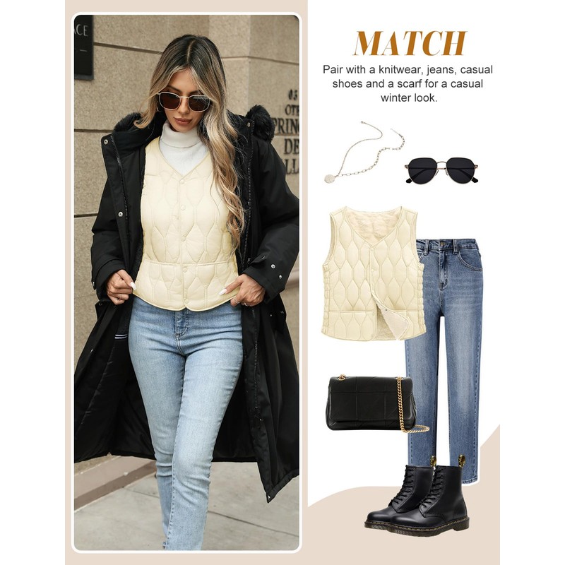 - 【Quilted Vest Sleeveless】Women's fleece vests are a good choice for the autumn and winter seasons, classic, elegant, fashionable, lightweight, warm, versatile, a must-have in your wardrobe. Quilted vests can be worn not only outdoors, but also under down and cotton jackets in cold winter, perfect for adding the finishing touch to your look in cooler weather, or as a cosy underlayer for extra warmth when you need to keep warm.