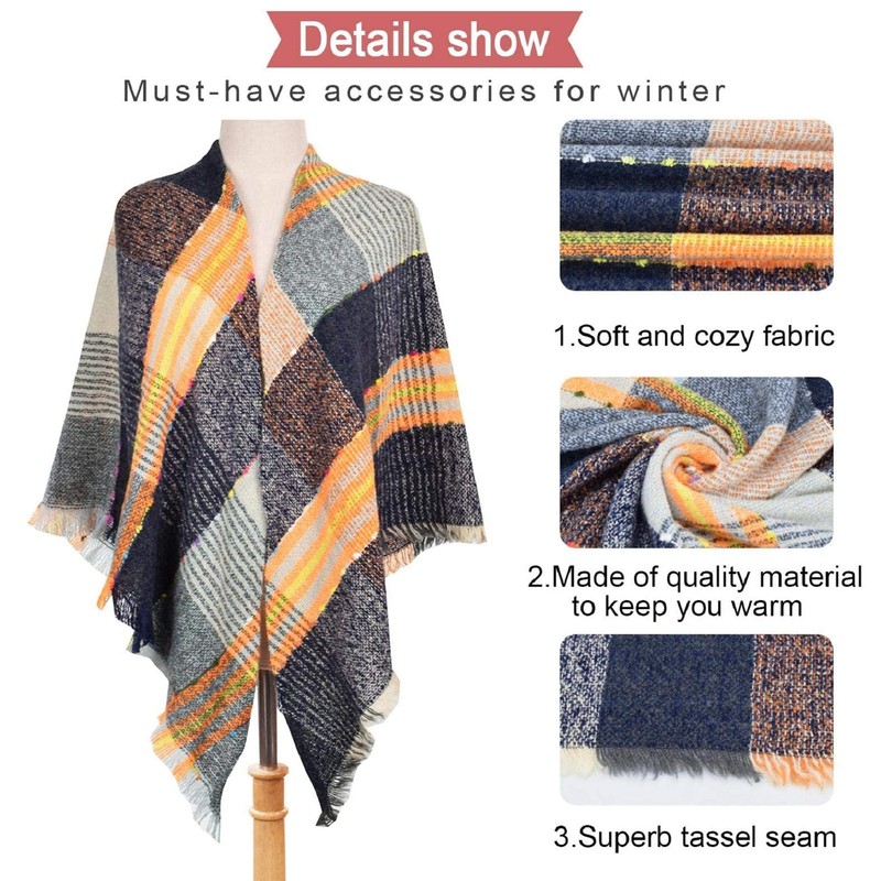 - MATERIAL This plaid women scarf is made of 100% polyester, which is very soft. In addition, it features delicate, lightweight, soft and draped fabric. Suitable for autumn, winter and spring, keep warm and cold.