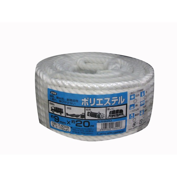 Yutaka Make KS920 Polyester Rope, Versatile Pack, 0.4 inches (9 mm) x 66.6 ft (20 m)