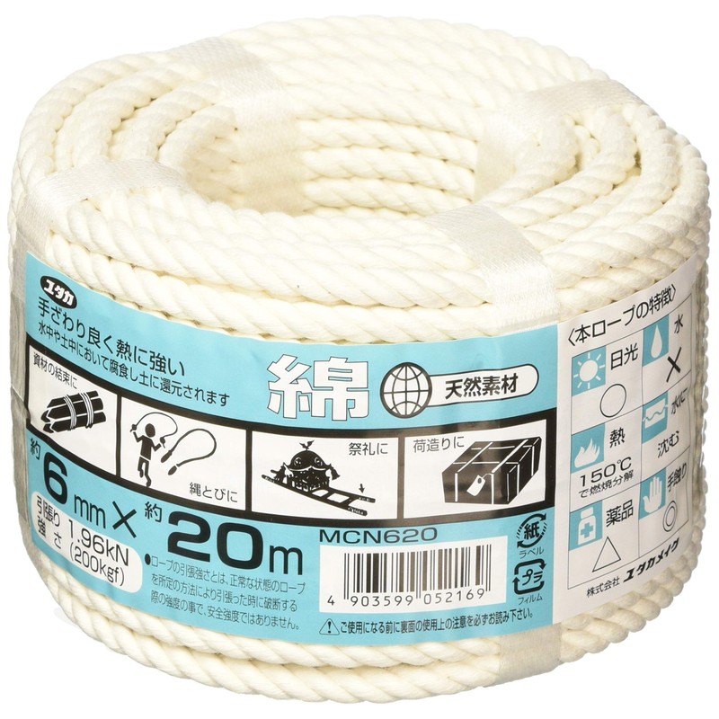 Yutaka Make MCN620 Cotton Rope, All-Purpose Pack, 0.2 inches (6 mm) x 66.6 ft (20 m)