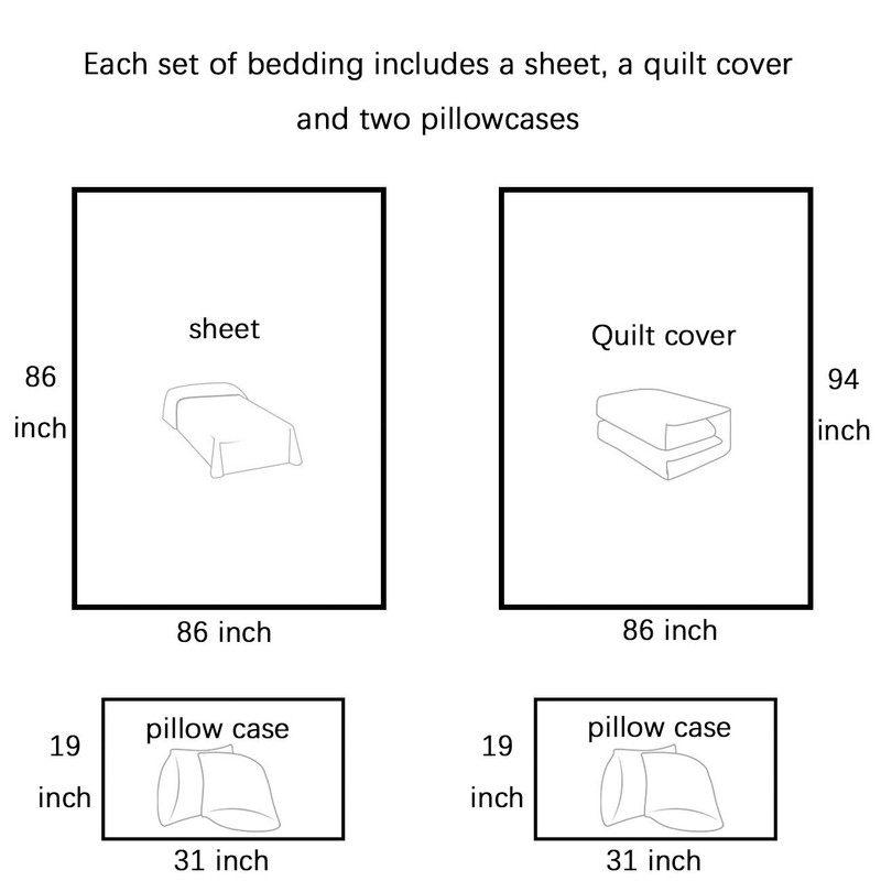 - Each set includes 1 sheet, 1 quilt cover and 2 pillowcases, suitable for most hotels