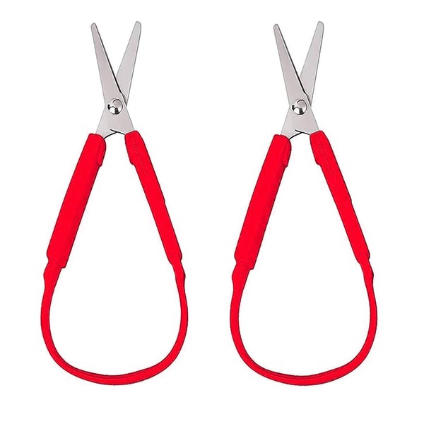 YUTOU Grip Scissors Easy to Grip Craft Scissors Self Opening Loops Scissors for Children, Teenagers and Adults for Special Needs (Red) Pack of 2
