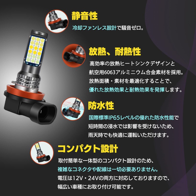- (Equipped with High Brightness SMD Chip & Switchable in 3 Colors) Adopts high quality high power LED chip 3030SMD for high brightness, low consumption, and long life. With a total luminous flux of 4,800 Lm, it illuminates brighter than a genuine halogen for improved visibility. You can switch between Yellow (3000K), White (6000K), Lime Green (4100K), Ice Blue (1000K), Blue (15000K), Pink Purple (3000K). White light (6,000K), which makes it easier to see road and side road obstacles on dry road surfaces at night, yellow light (3,000K), fashionable light (4100K), ice blue light (10,000K), blue light (15,000K), and pink purple light (30,000K) for accidents and comfortable driving. support
