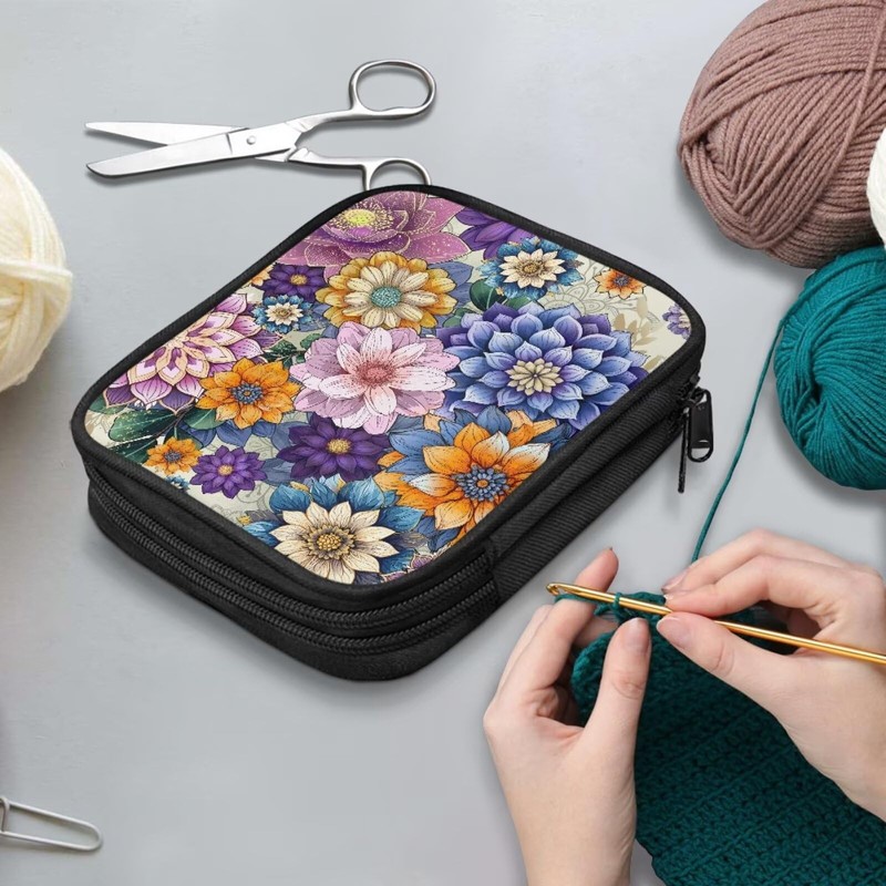 YUVAMAGIMO Blossom Flower Crochet Hooks Organizer Zipper Bag with Mesh Pocket Portable Travel Crochet Hook Storage Bag for Crochet Supplies Knitting Accessories for Women