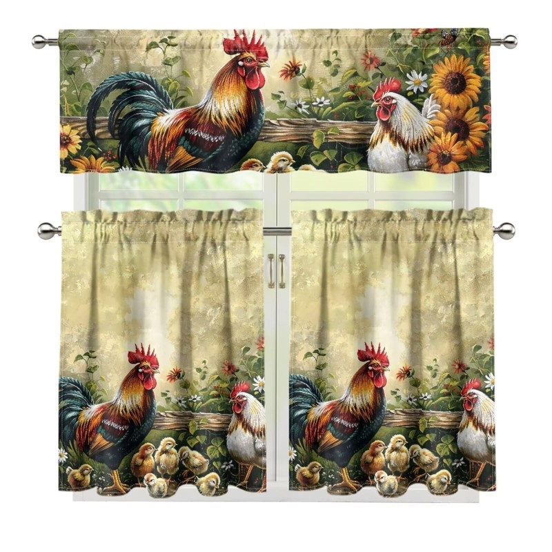 YUVAMAGIMO Sunflower Rooster 3-Piece Tier Curtains 36 Inch Long Country Kitchen Curtains Set Tab Top for Small Window Bathroom Farmhouse 54" x 18"