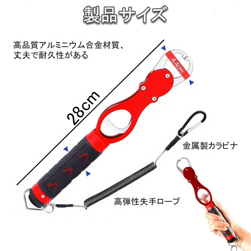 - セット内容:フィッシュグリップ1個セット。 サイズ:約29cm*5cm*4.4cm、チャック口約:30mm。カラー:赤。
