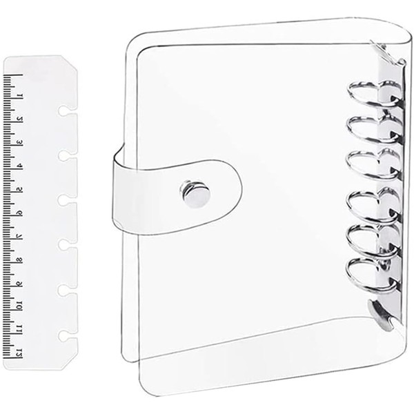 YUWENW システム手帳 バインダー 1個セット ミニ6穴手帳 定規付き ミニサイズ 可愛い システム手帳カバー ポケットサイズ 防水 柔らかい PVCクリア素材 リング 日記帳 ノート (A7、透明)