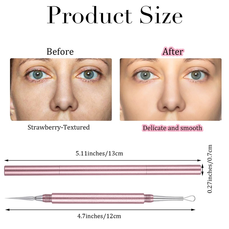 - 2 in 1 design: This acne removal needle features a dual head design, with a tiny needle on one end that can accurately deal with small blackheads and whiteheads, while the other end is equipped with a squeezing tool that can effectively remove fine closed pimples. The dual ended design increases the versatility of the tool and helps the user to complete the maintenance steps more efficiently