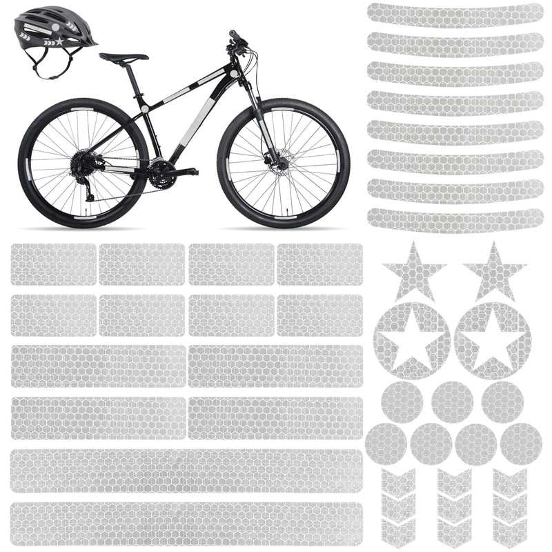 - Package Includes: The reflective stickers set includes 42 pcs of various shapes and sizes, ensuring you have enough reflective stickers for helmet, bike decals, and other applications. Perfect for enhancing visibility and safety during night riding.