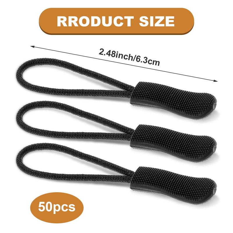 YUXIANLB 50Pcs Zipper Pulls, Zipper Pulls Replacement, Zipper Pull Upgraded, Zipper Pull Puller, Black Heavy Duty Zipper Extender Cord for Backpack, Jackets, Pants, Boots, Coats, Luggage, Purses