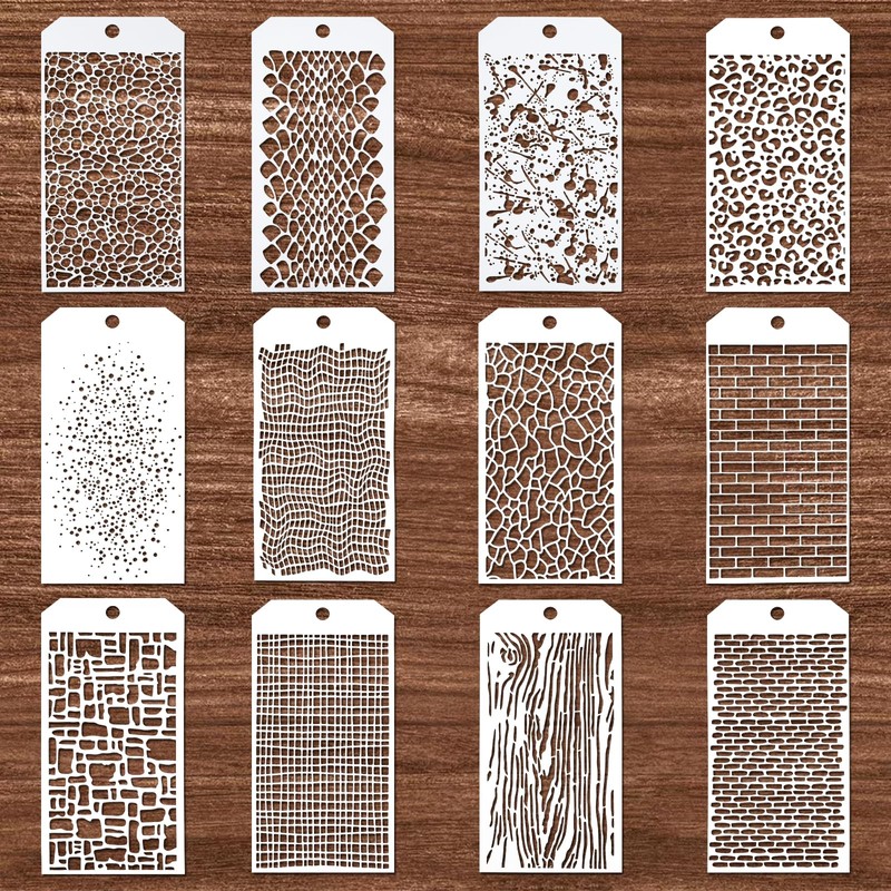 YUXIANLB Stencils for Painting 12pcs Stencils for Crafts Reusable Graffiti Template Texture Model Mixed Media Stencil Layering Drawing Templates for Crafts Furniture Paper Card Canvas Making DIY Tool