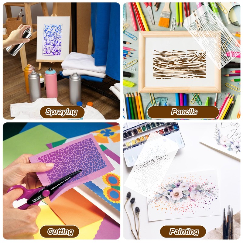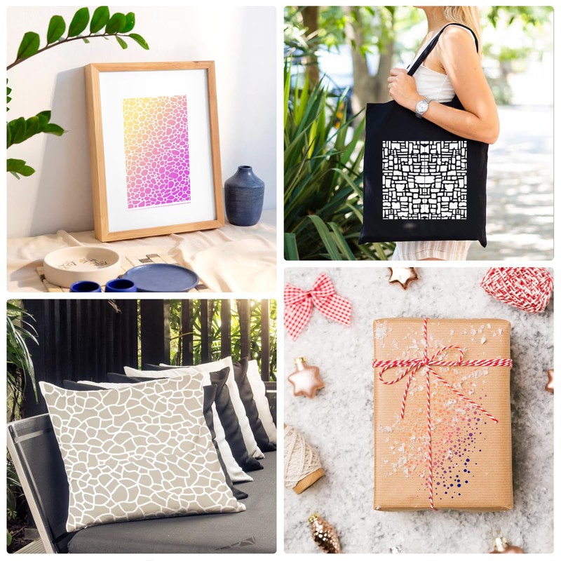 • Lightweight and Compact Stencil: Our texture stencils for painting are made of pet material, 0.2mm thick, light and flexible, strong and reliable, not easy to break, not easy to fade, no color bleeding, can be applied for a long time. These mixed medium stencils are reusable and suitable for creating many different crafts