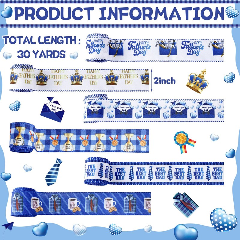 - Beautiful Father's Day Theme Design: our Father's Day ribbon features a variety of stunning Father's Day designs; These vibrant and festive designs will add a touch of Father's Day to art projects or decoration