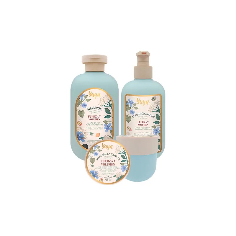 Despierta la fuerza y volumen de tu cabello con el Kit Capilar Yuya 100 % Natural. Esta fórmula poderosa combina Colágeno y Biotina en tres productos: Shampoo, Acondicionador y Mascarilla, todos elaborados de forma natural para cuidar tu cabello sin químicos agresivos.