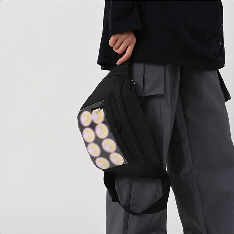 YUYAKESHI Bag, Transparent Window, Fanny Pouch, Display, Small Items, Outing, Shoulder Chest Bag, Buckle Type, For Can Badges, Adjustable Length (Black), Black