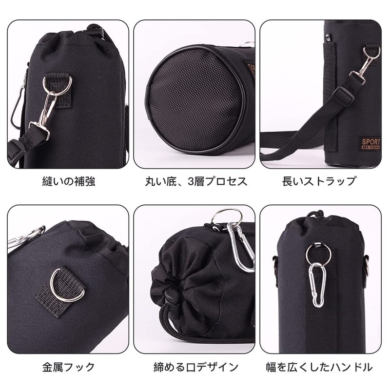 - Strap Type 3-Layer Bottle Cover: Material: Waterproof Oxford cloth, 0.1 inch (3 mm) thermal cotton. Size: Cup cover closure height 3.5cm, mouth can be tightened Cover thickness 3mm, strap length 70-140cm Color / Cover Inner Diameter x Total Height: Black No. 3 [3.5 x 10.0 inches (8.8 x 25.5 cm)]