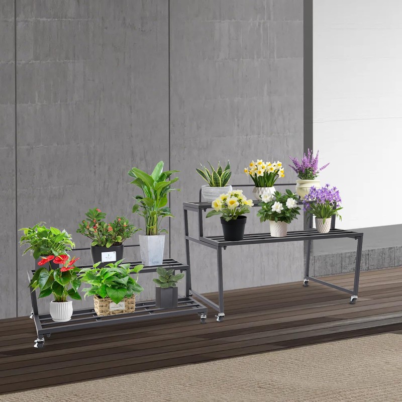 - 【Wide Application】 Theportable moving garden cart is stylish, sturdy and durable. Suitable for indoor and outdoor, home, office, shop, garden, courtyard, balcony, living room and other places. Help you store and display your flowers and potted plants, etc.