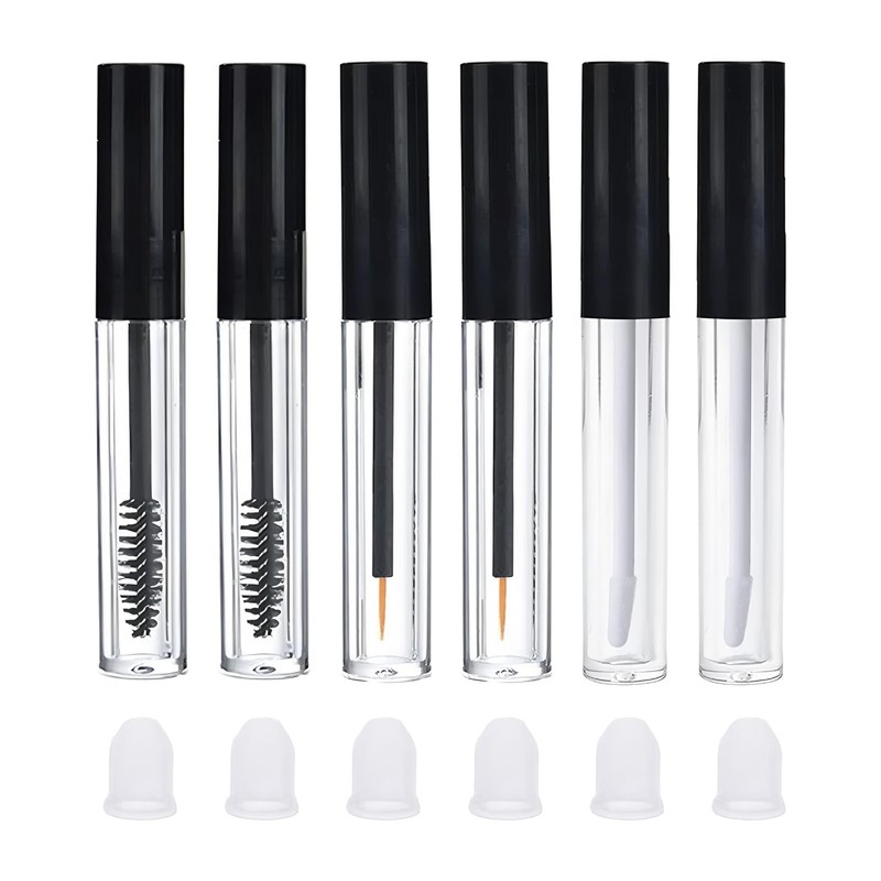 YUYUDEHM 6PCS 10ml Empty Mascara Tube with Wand, Eyeliner Tube and Refillable Lip Gloss Tubes with Brush (Black)
