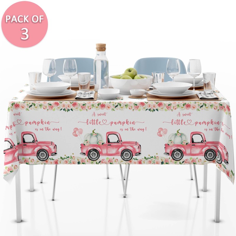 Yuzioey 3 Pack Pumpkin Baby Shower Tablecloths, A Little Pumpkin is on The Way Table Cover, Fall Baby Shower Decorations, 104" x 54" Pumpkin Baby Shower Supplies