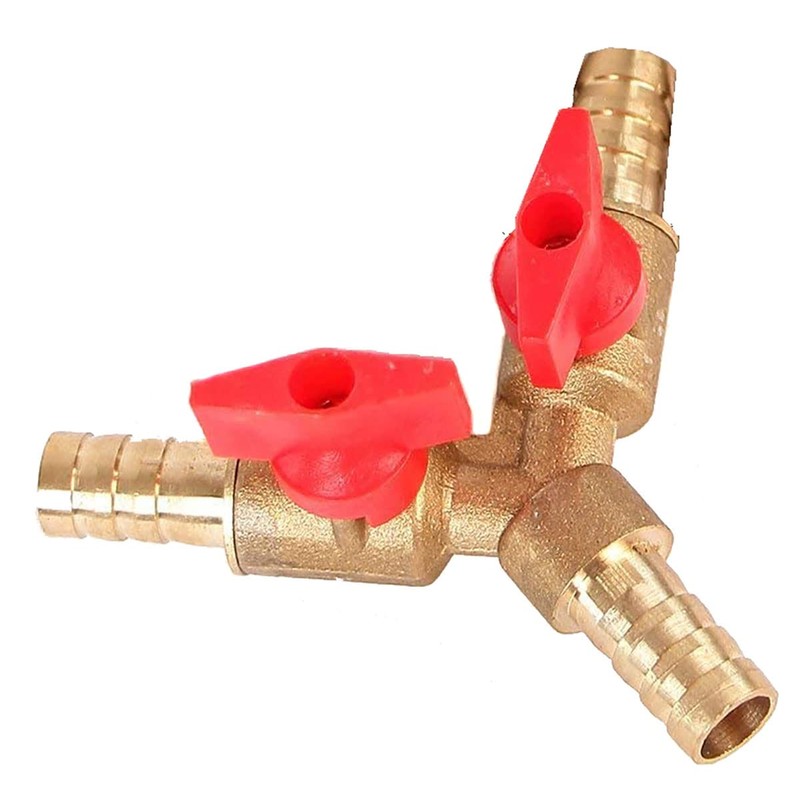 - 2-way Y-splitter with shut-off ball valves. 10mm diameter hose connector