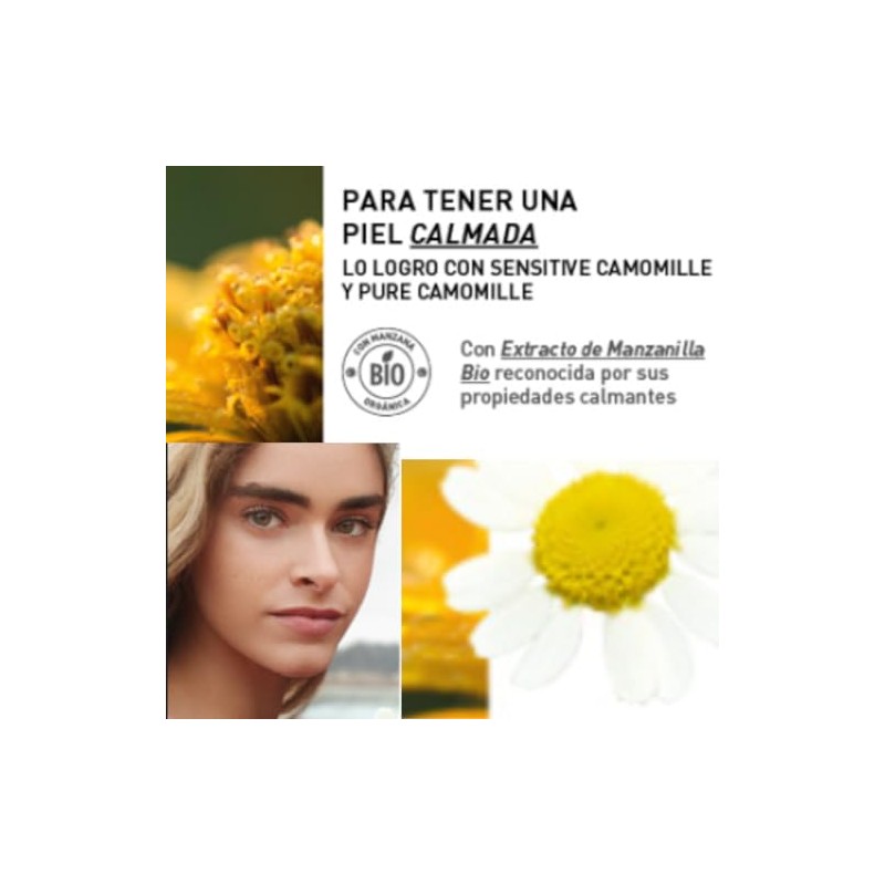 - - Con extractos de manzanilla natural que aporta propiedades calmantes y protectoras a la piel