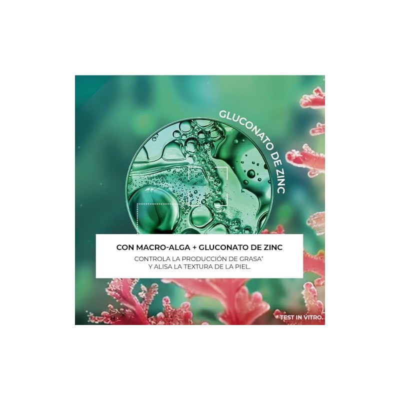 - alga y gluconato de zinc para una piel equilibrada y saludable CONTROL DE GRASA: Regula eficazmente la producción de sebo mientras mantiene la hidratación óptima de la piel TEXTURA EN GEL: Fórmula ligera matificante que se absorbe rápidamente sin dejar residuos grasosos BENEFICIOS COMPROBADOS: Reduce visiblemente los poros y mejora la textura de la piel, demostrado en estudios clínicos USO DIARIO: Aplicar mañana y noche después del sérum para obtener mejores resultados. Ideal para todo tipo de piel