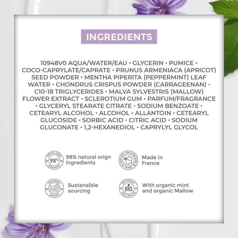 Yves Rocher Exfoliating Foot Gel (Mint & Mallow) | Reduce Calluses and Smooth Dry, Rough Skin | Softens and Smoothes Feet | All Skin Types, Tube 75 ml