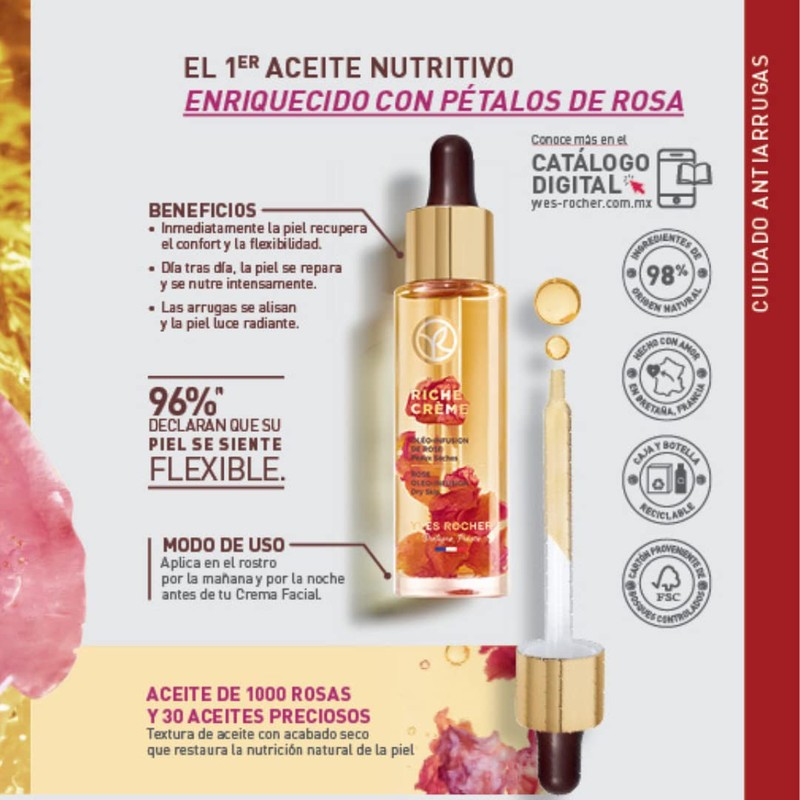 - Fórmula enriquecida con aceite de 1000 rosas que promueve la regeneración de la piel a profundidad.