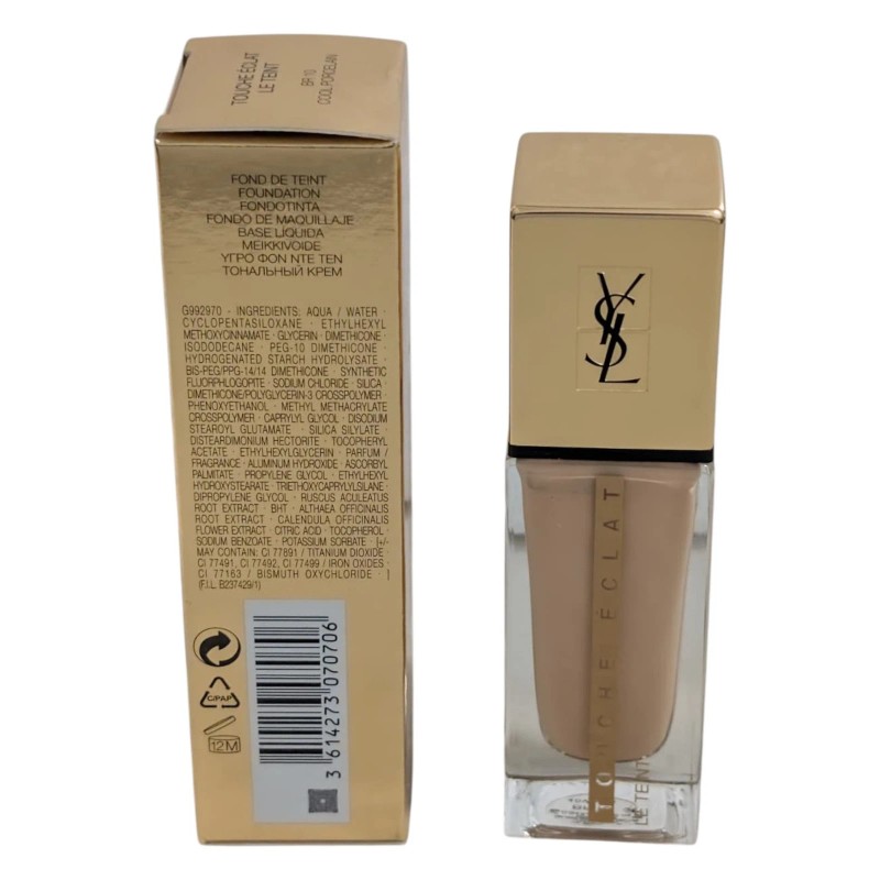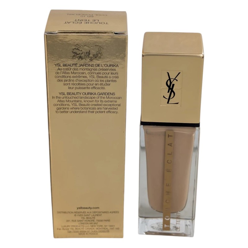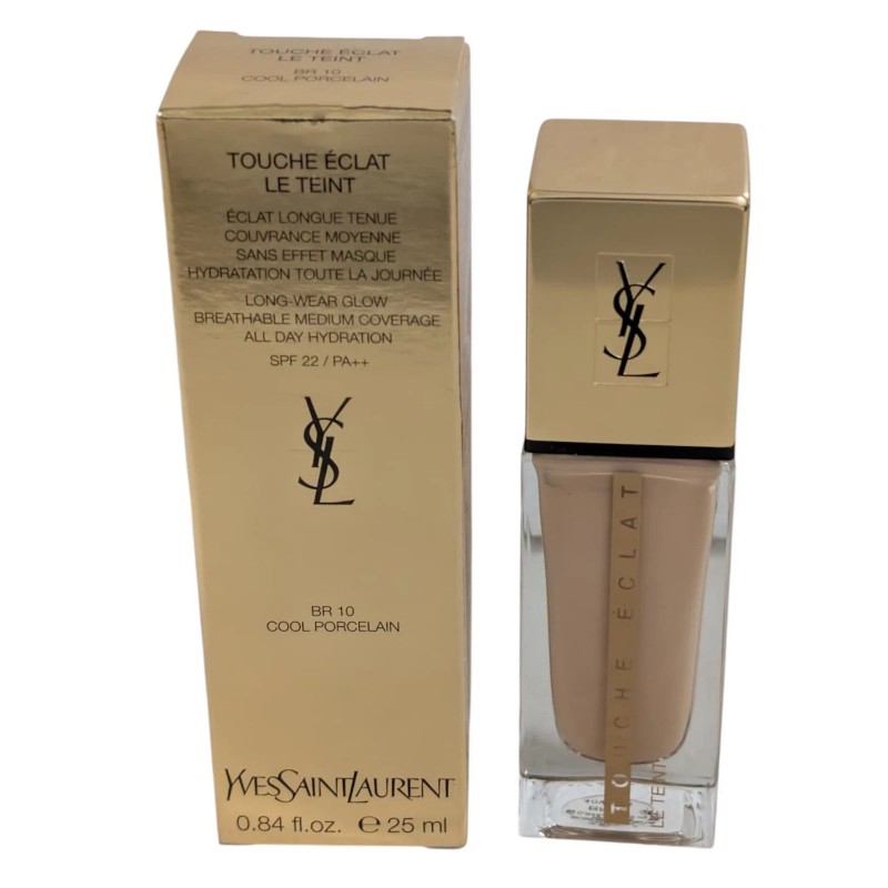 Illuminate and perfect your complexion with Yves Saint Laurent Touche Éclat Le Teint Foundation in shade BR10 Cool Porcelain. This lightweight, radiant foundation delivers natural-looking coverage while enhancing your skin's luminosity for a flawless, healthy glow.