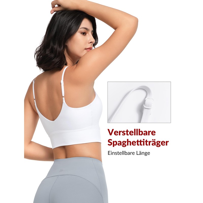 • Because you often lie on your stomach or back during yoga and pilates, a sports bra without closure is suitable. So zip or hooks cannot press uncomfortably.
