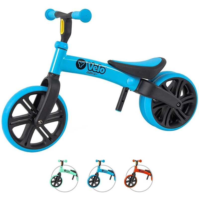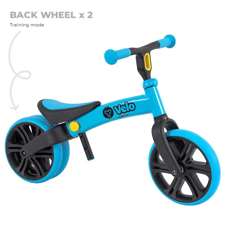 - ICONIC DUAL REAR WHEEL - The Y Velo Junior allows kids to practice with a stable double-width wheel before switching to a single wheel as they build confidence. We’ve completely refreshed our multi-award winning Y Velo Junior balance bikes with new features and vibrant colors, red and blue.