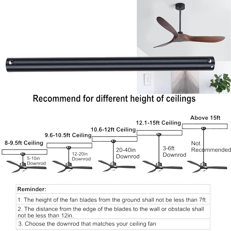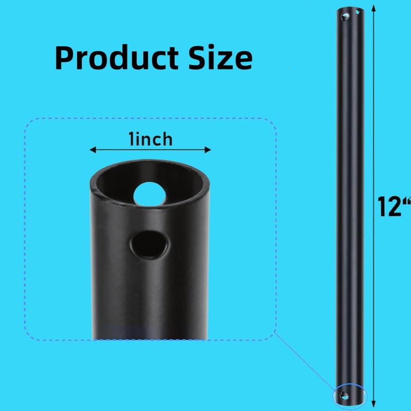 - Enhanced Airflow & Durability:Crafted from durable iron with a sleek matte black finish, our 12" downrod is built to withstand years of use. The protective coating ensures it remains in excellent condition, even in humid environments, while enhancing airflow and safety