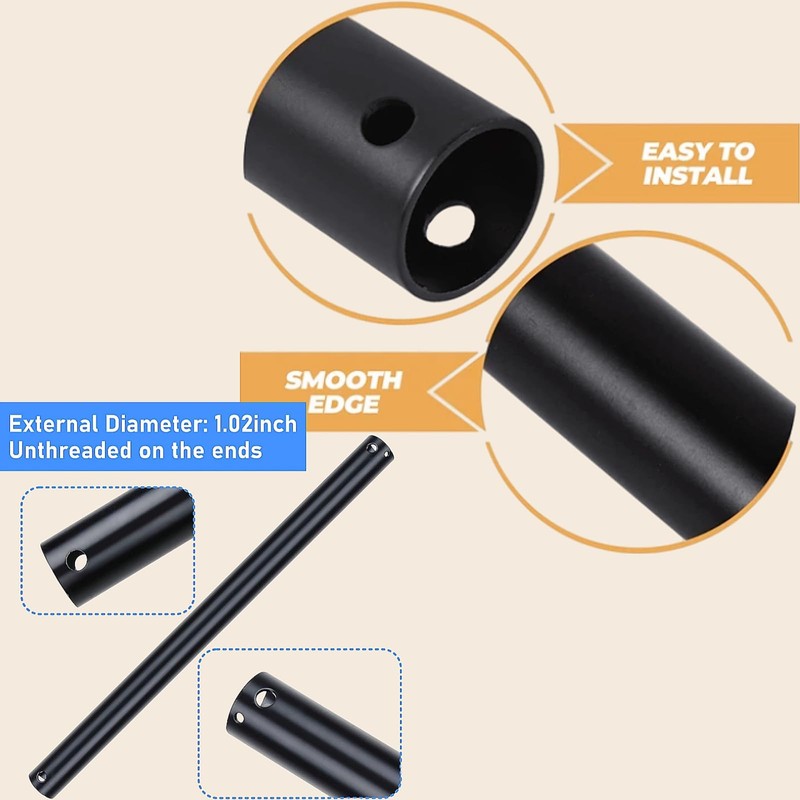 - Professional-Grade Downrod Solution:Universal 12-inch extension downrod crafted from heavy-duty steel, featuring 1-inch outside diameter for superior stability. Perfect replacement part for low-profile flush mount installation in rooms with 8-9ft ceilings