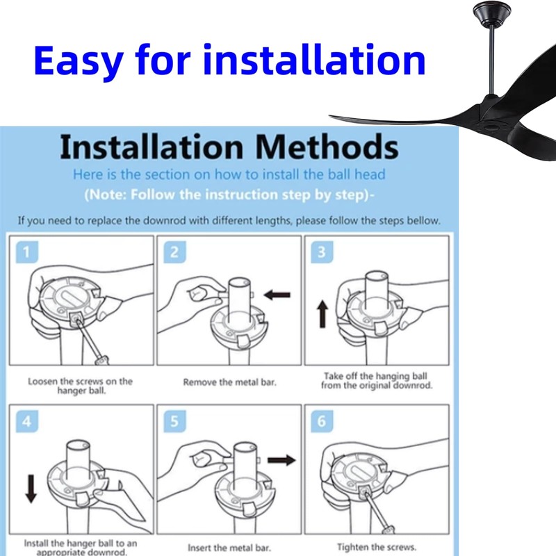 - Easy Installation:With a straightforward design, this extension drop down rod ensures hassle-free setup. No complex wiring needed—simply attach the downrod to the fan's ball to adjust its position effortlessly