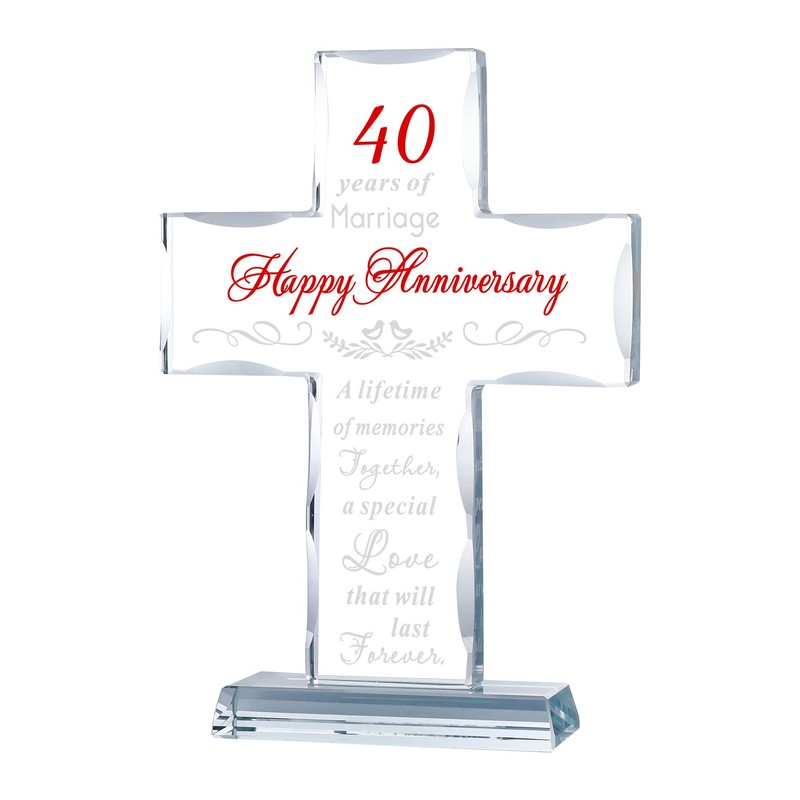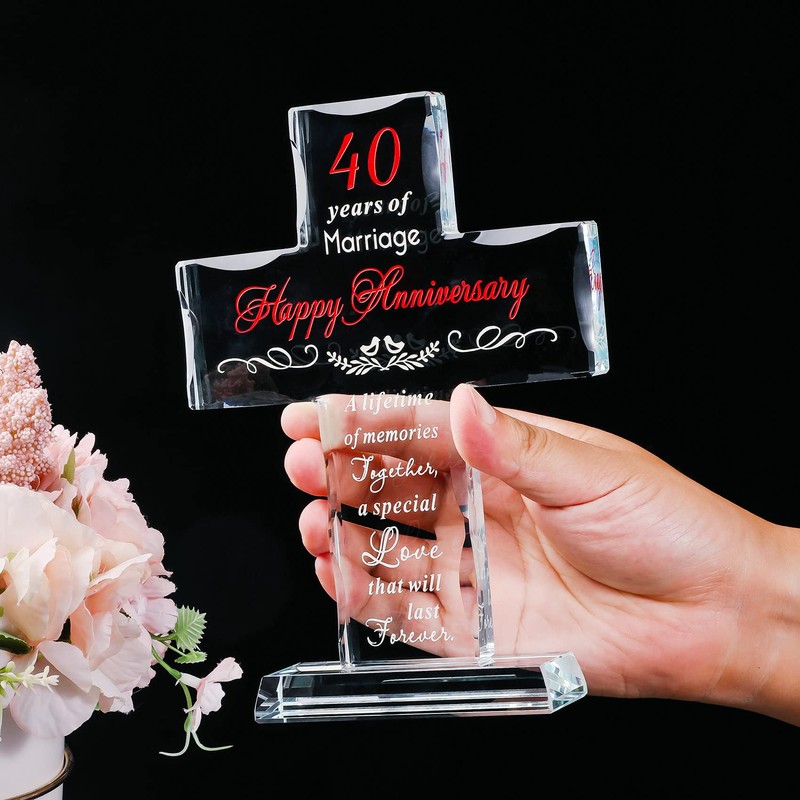 - 40th Anniversary Gifts for Couples: The 40th wedding anniversary is a milestone to celebrate, and the glass cross is given as a gift to celebrate the 40 years you've spent together. Romantic text and pattern of anniversary cross have an eternal and precious meaning