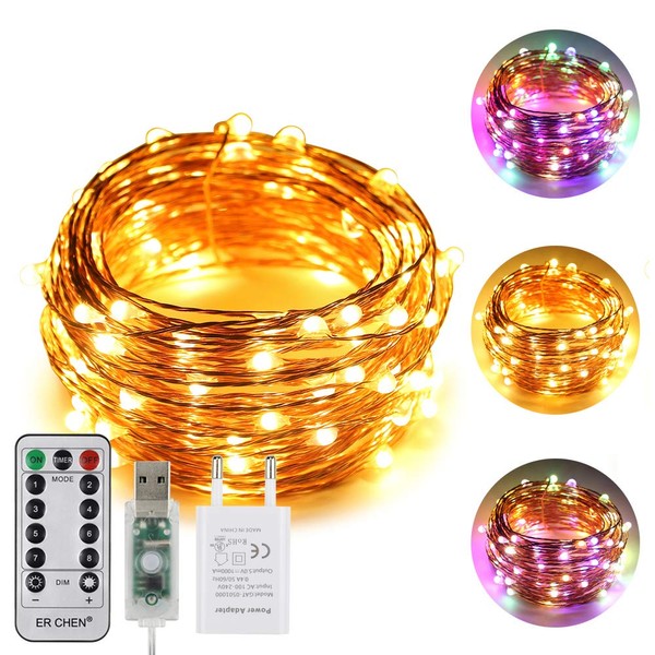 33 ft / 10 m long copper wire houses 100 patented micro-dual-colour LED lamps, which have about rice grain size and are very bright. It can work freely outdoors and can be easily operated by remote control. It illuminates your garden or garden and gives your party, wedding, holiday or celebrations a romantic mood and cheerful ambience.