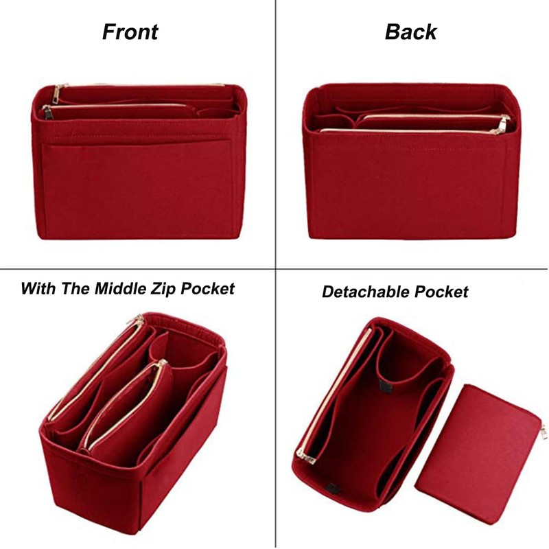- Luxury felt purse organizer with high quality and new materials are made of durable, soft and pliable, lightweight felt fabric. The zippers of the purse organizer are made of metal, durable, fashionable and smoother