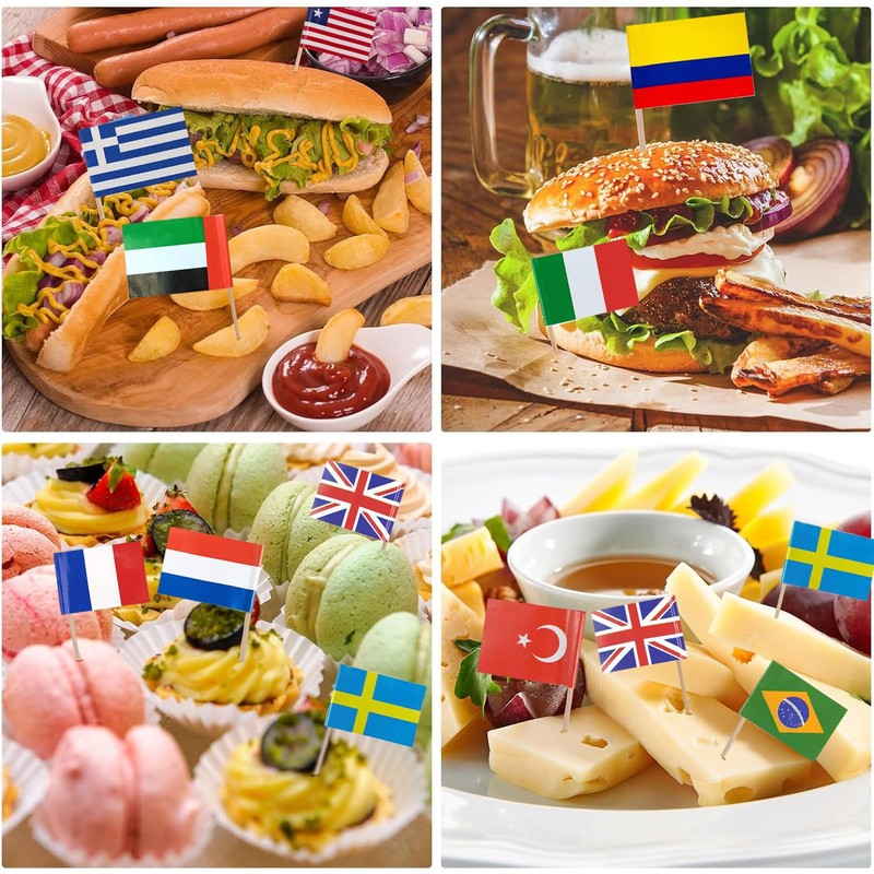 - Included in the set: you will receive 100 flags of different countries, which are the perfect decoration for sandwiches, cupcakes, fruits, cocktails and any snacks. Bring more patriotism to your celebrations and gatherings.