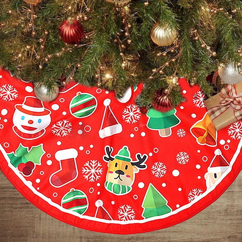 - Cute Patterns The design of this Christmas tree skirt is mainly red, with prints of Santa Claus, Christmas trees, reindeer and snowflakes, which is cute and beautiful.