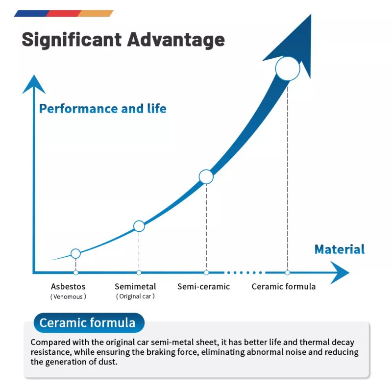2.Ceramic brake pads produce less noise and dust than metallic pads.