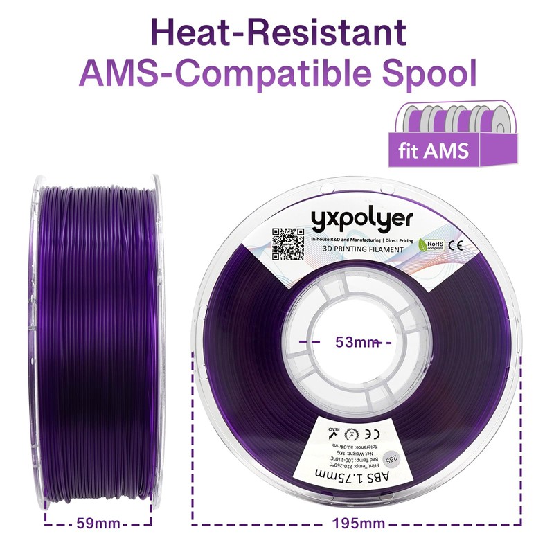 - AMS-Compatible PC Spool: Made of durable, heat-resistant polycarbonate that won’t deform during storage or use. Reusable and transparent, fully compatible with AMS, H2D, and most dry box systems. Spool dimensions available in product images.
