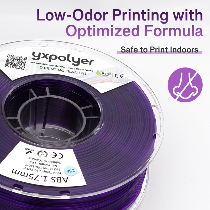 - Low-Odor ABS Material: Made from high-quality ABS with a custom low-odor formula. Ideal for indoor printing without strong fumes.
