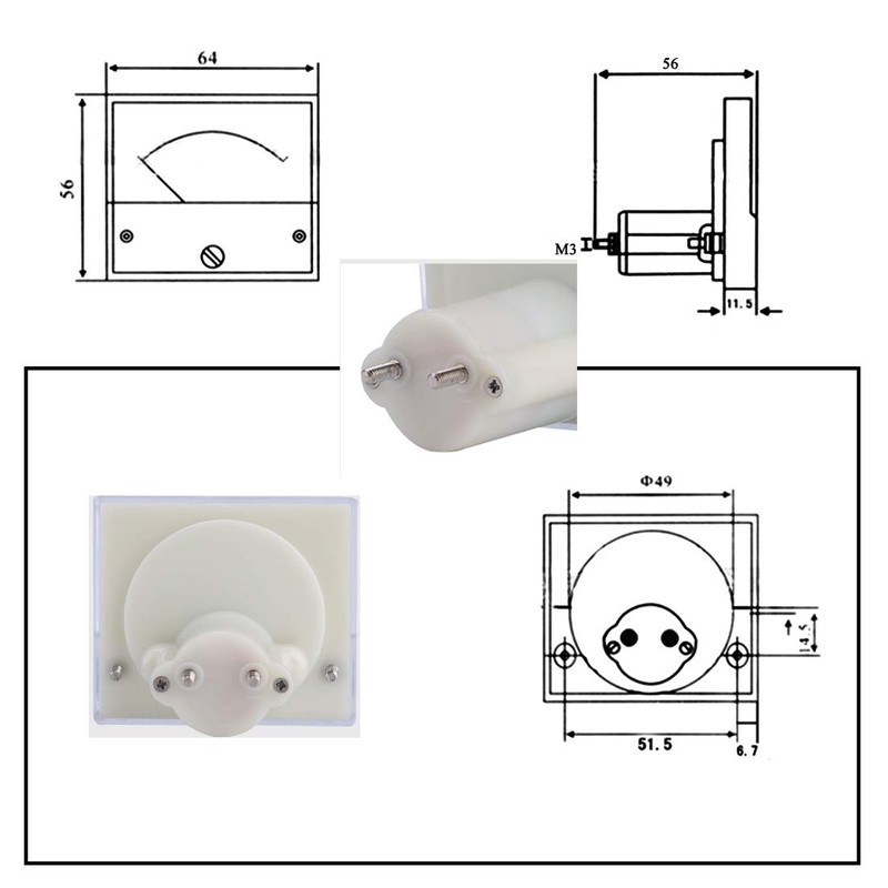 - Accuracy : Class 2.5;Panel Size : 64 x 56 x 56mm/ 2.5" x 2.2"x 2.2''(L*W*H);Thread Dia : 3mm0.12"
