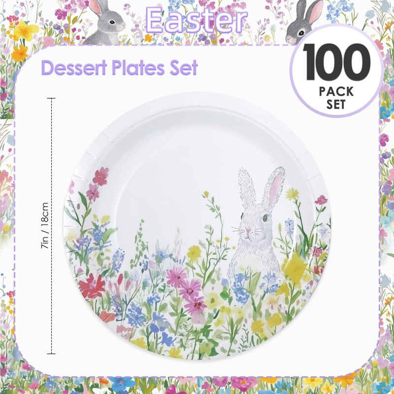 • Easter Party Paper Plates Set Disposable Includes: 100 Count Dessert Plates 7in
