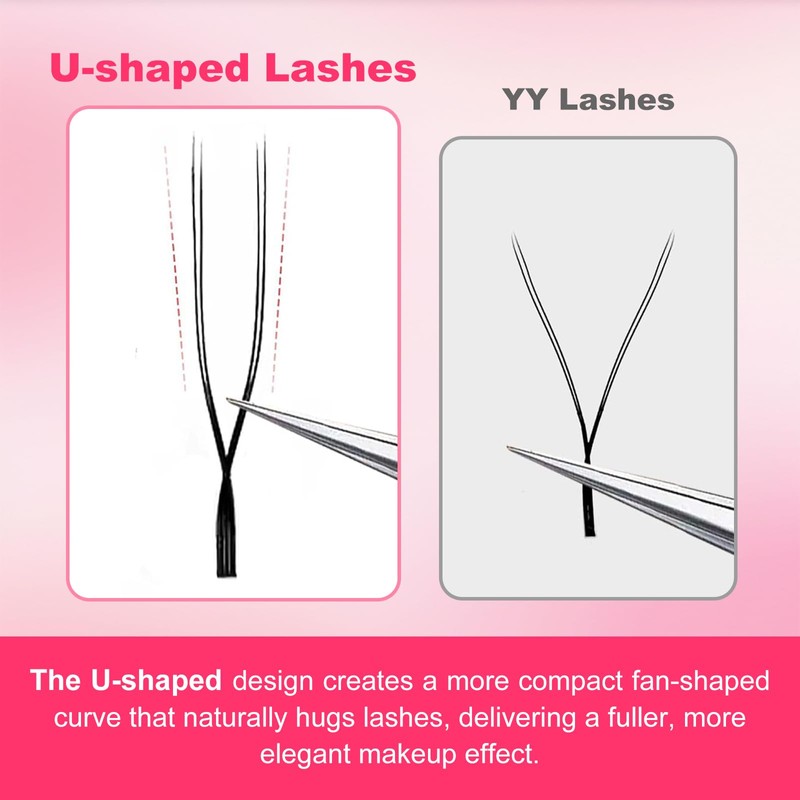 - 【U-shaped lashes】: U-shaped eyelashes have been improved and upgraded on YY eyelashes, the eyelash shape is U-shaped,tips of the two lashes are parallel to each other, eyelash flowering is more natural and elegant.
