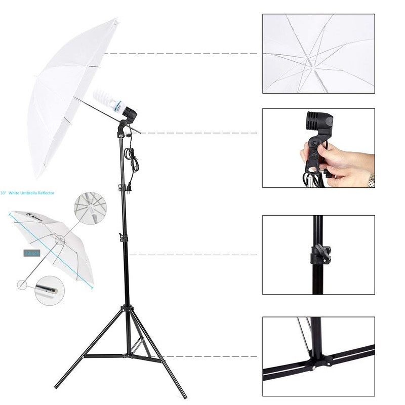 - Professional Photography Kit- YYAO Photography Lighting Kit Softbox Umbrellas Photography Light Bulbs Studio Lights Photo Backdrop Stand Kit,you can do fashion shots,video filming when the studio space is limited,with a carry bag,also can pack them all up as a travel set,easy to collect all the accessories and can be taken outside conveniently.