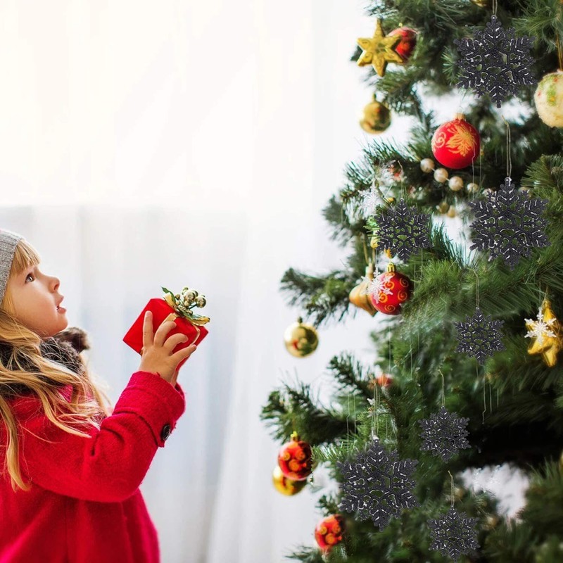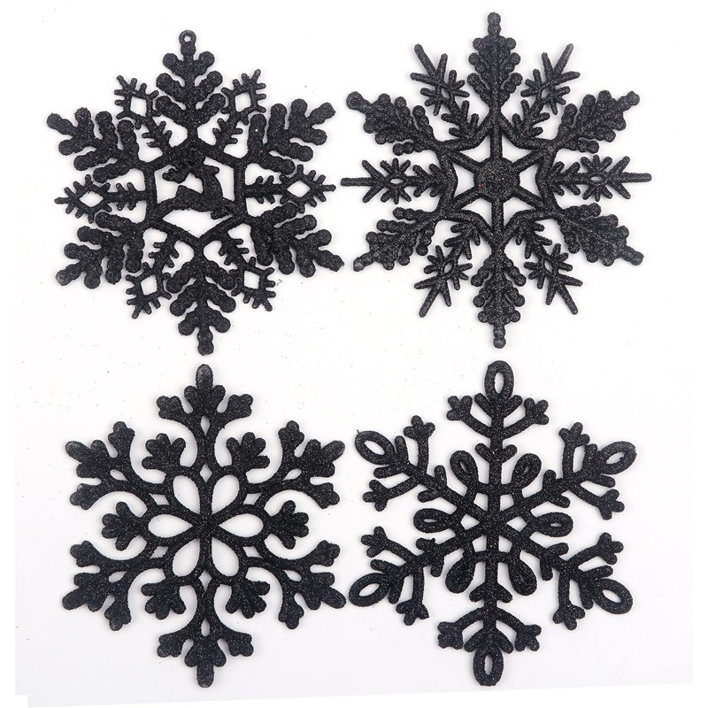 YYCRAFT 32pcs Glitter Snowflake Ornament 4 Inch for Christmas Tree Decoration-Black